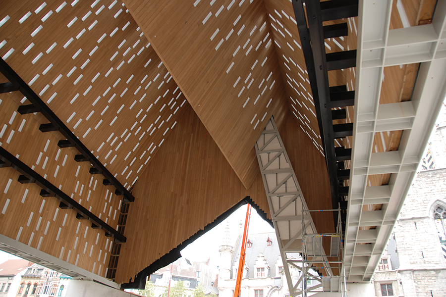 "The inspiration for the Stadshal comes from covered markets, the double facade of the city hall, medieval naves and the historic trade route that used to cross Braunplein on its way from Bruges to Cologne. Based on a great deal of history and careful consideration, it is both a medieval and a contemporary building. The choice of materials contributes to this as well”, says the architect Paul Robbrecht.